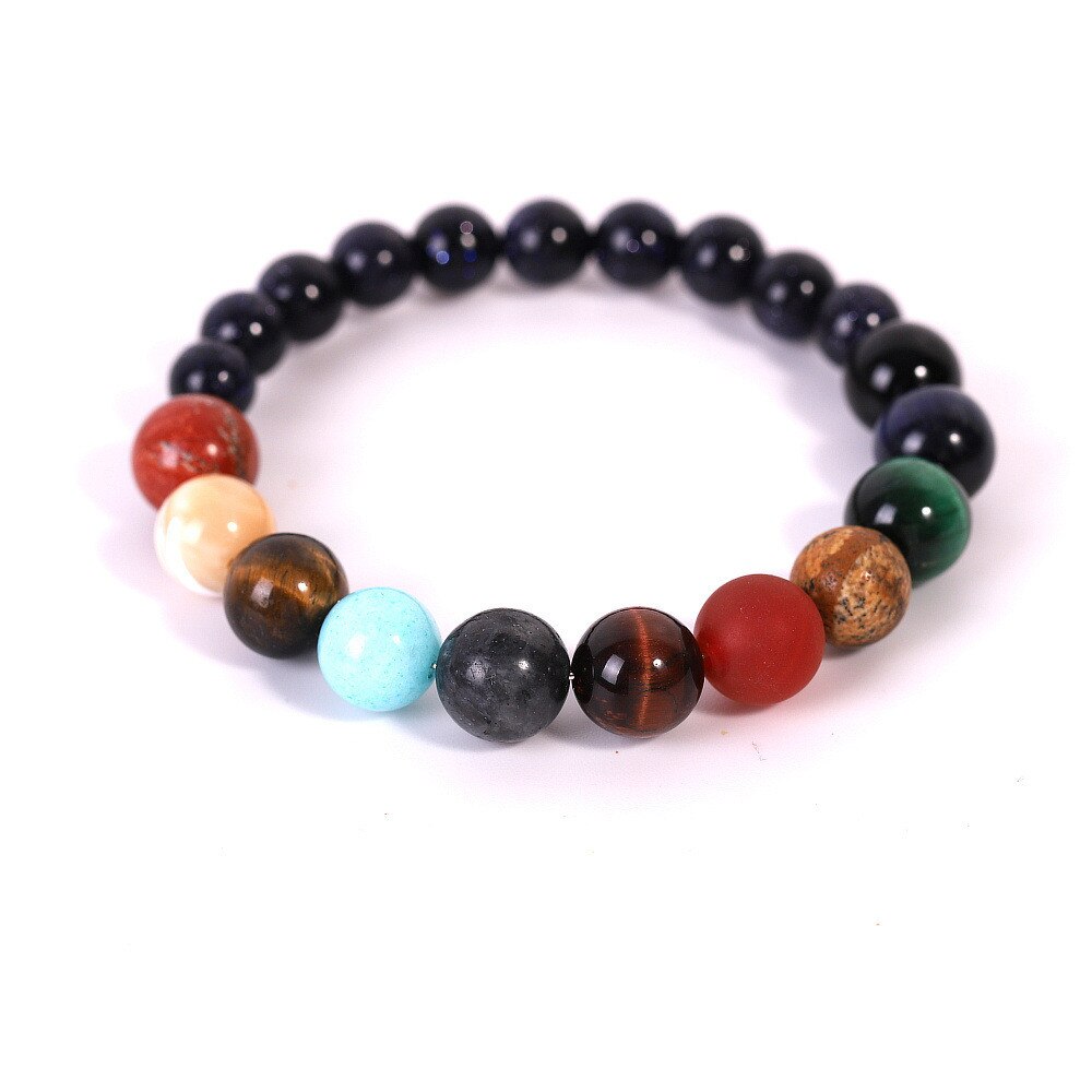 Wear the celestial bodies on your wrist with this gorgeous solar system bracelet. The eight planets of the solar system are represented with eight different and vibrant beads, separated with black plated beads.